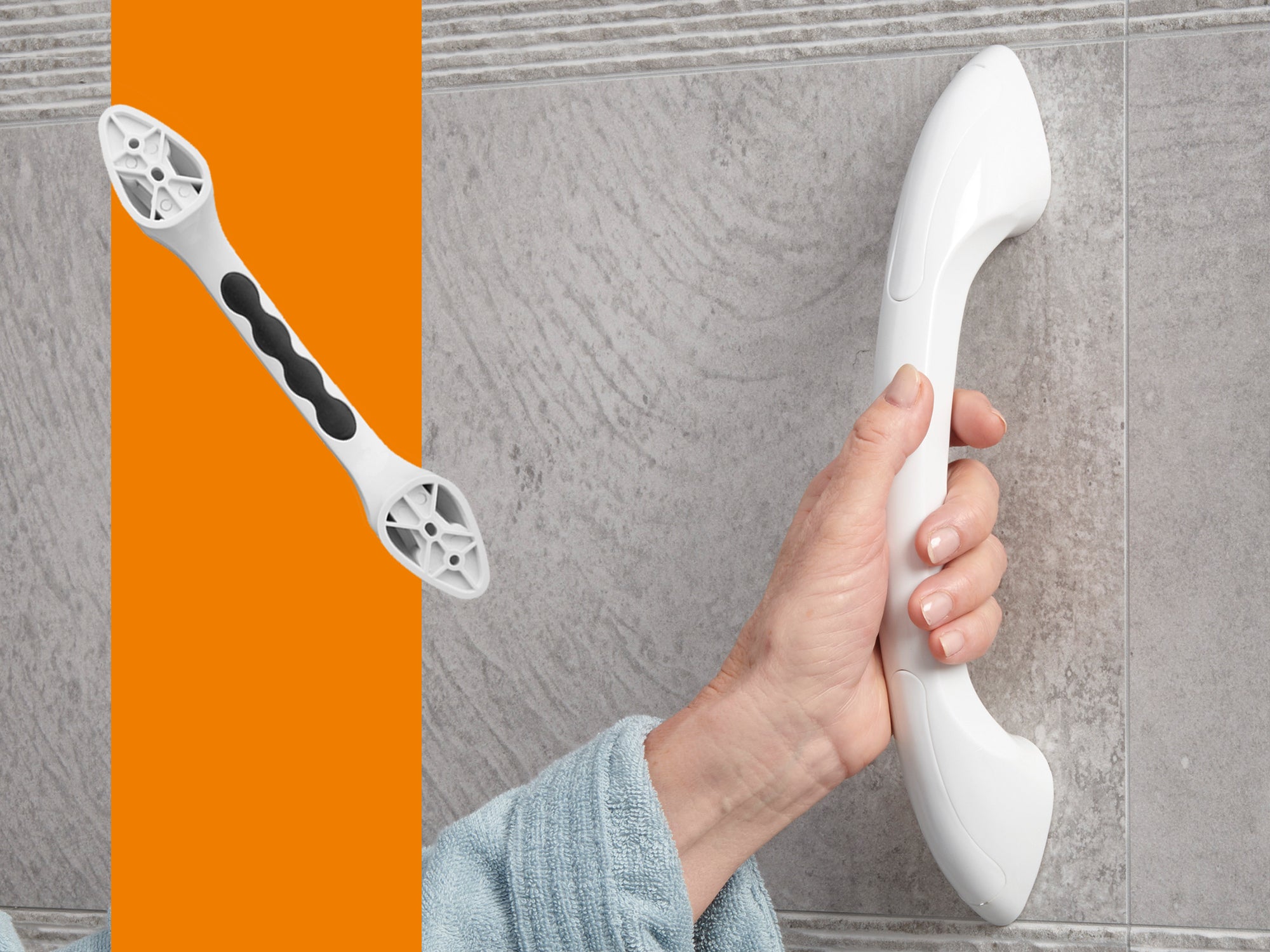 The Curve Grab Bar features a rubber anti-slip inlay on the inside of the bar to provide extra grip in damp or wet situations.